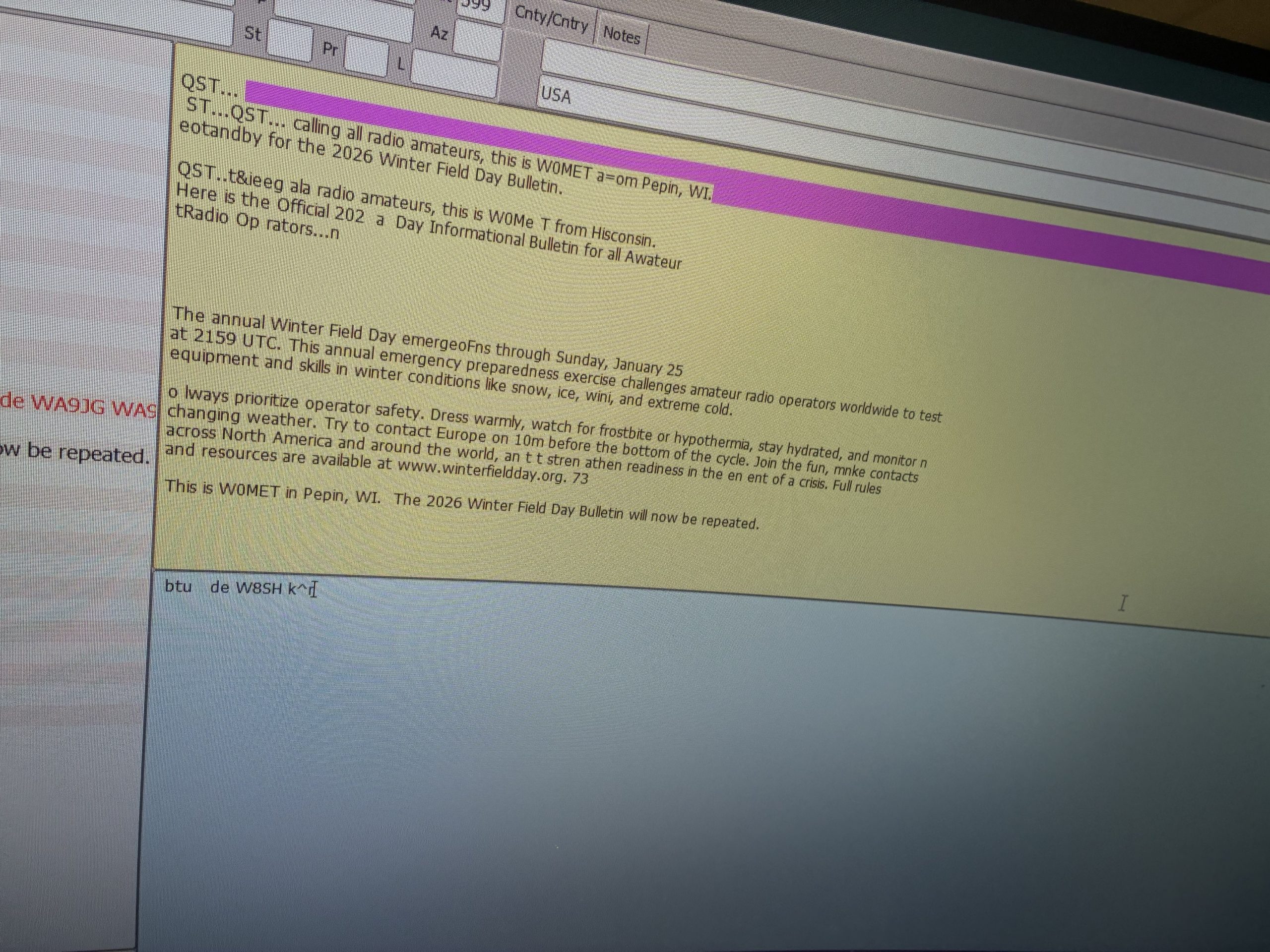 With the morning temperature in Lansing reading a balmy -18 degrees F on Saturday, of course the MSU squad was attempting to fix a satellite antenna for the 30 hour event. While unsuccessful in this repair, but very successful in saving their fingers and toes, this set the stage for the tenacity that amateur radio sometimes requires, and the MSU club often delivers. Winter Field Day is all about operating in adverse and unfamiliar conditions, and Saturday January 24th 2026 certainly counted as adverse. That, however, didn’t stop the club and it’s local partners in the Central Michigan Amateur Radio Club from getting into the shack at W8SH and logging some contacts.