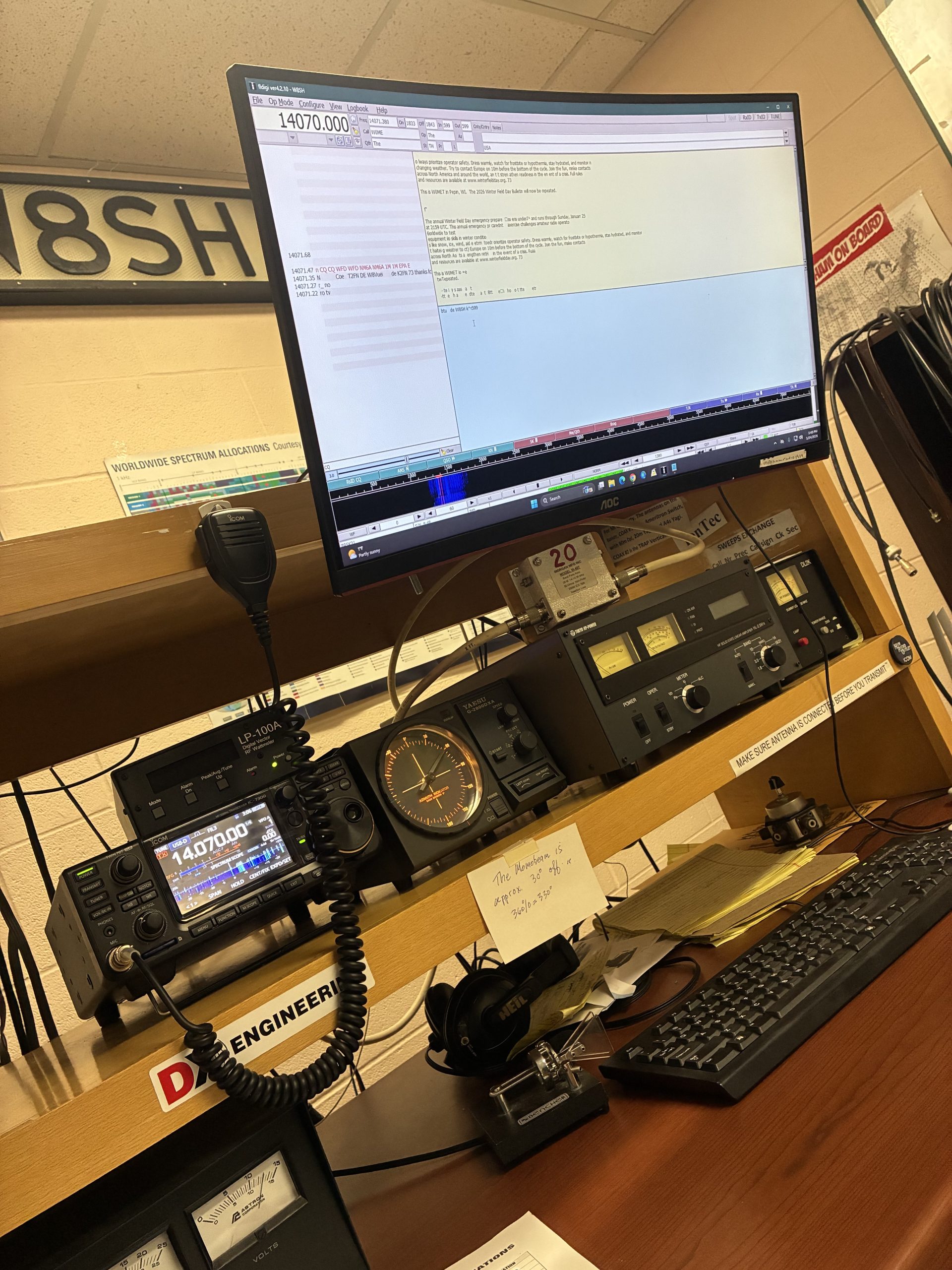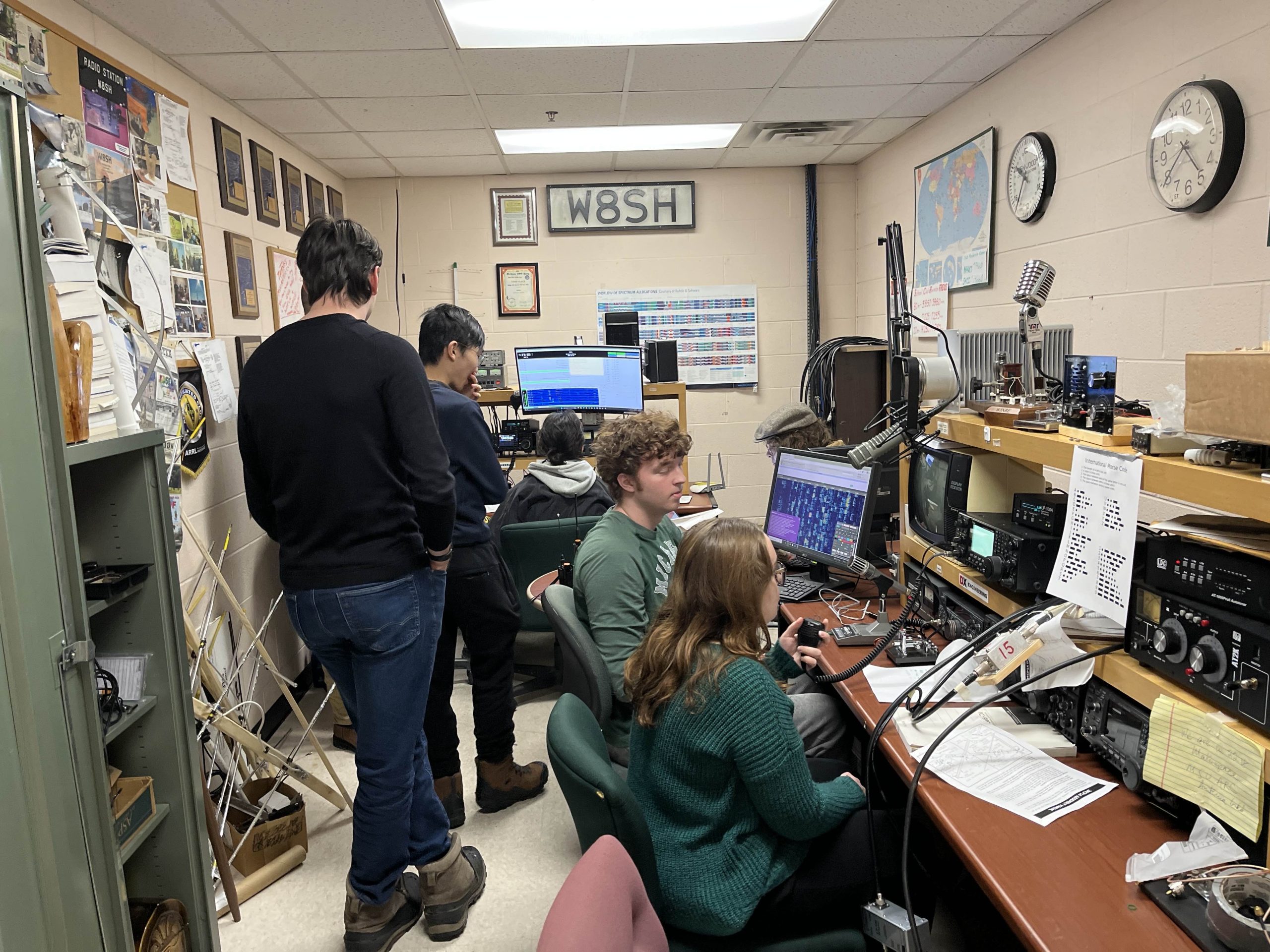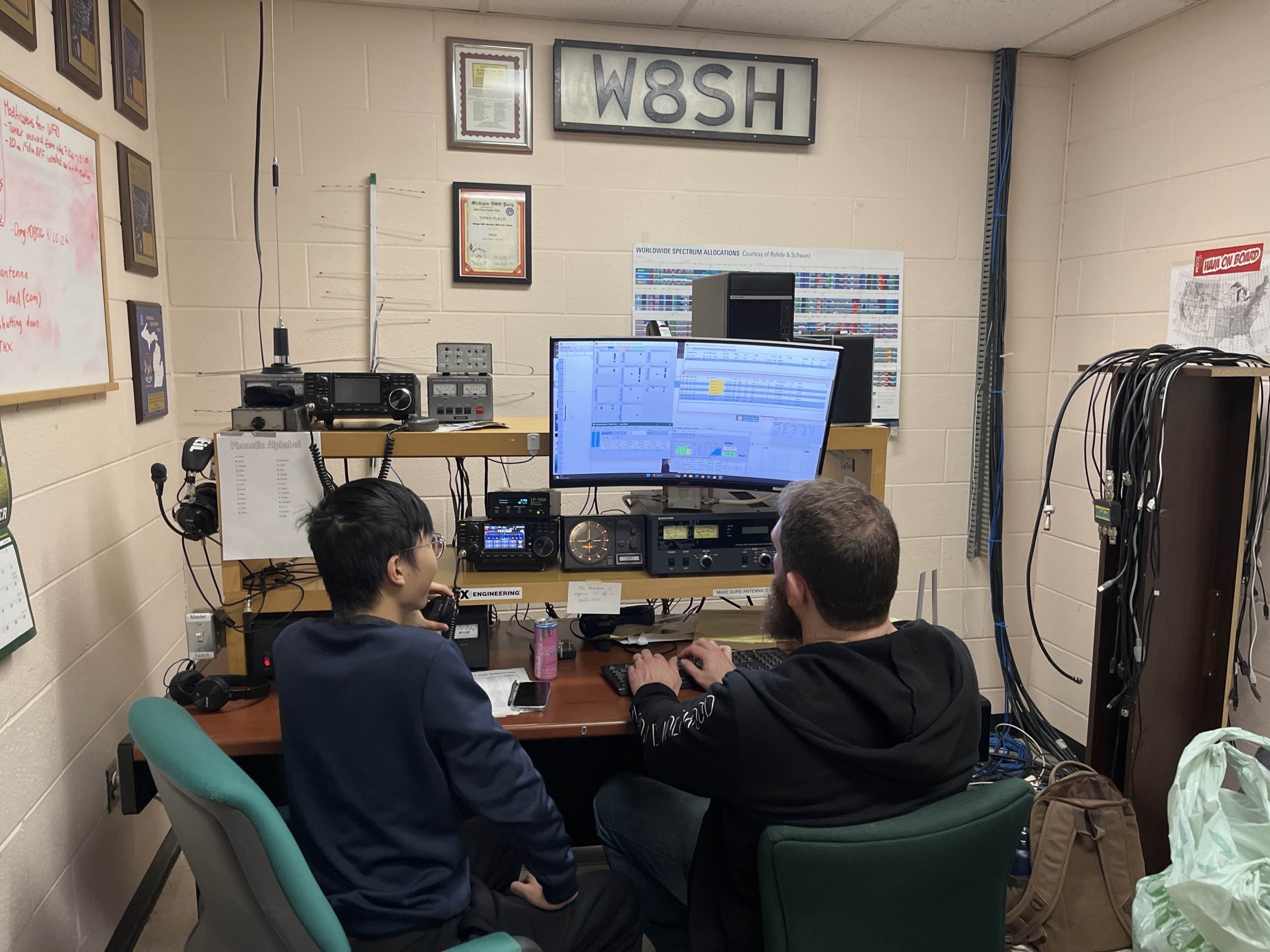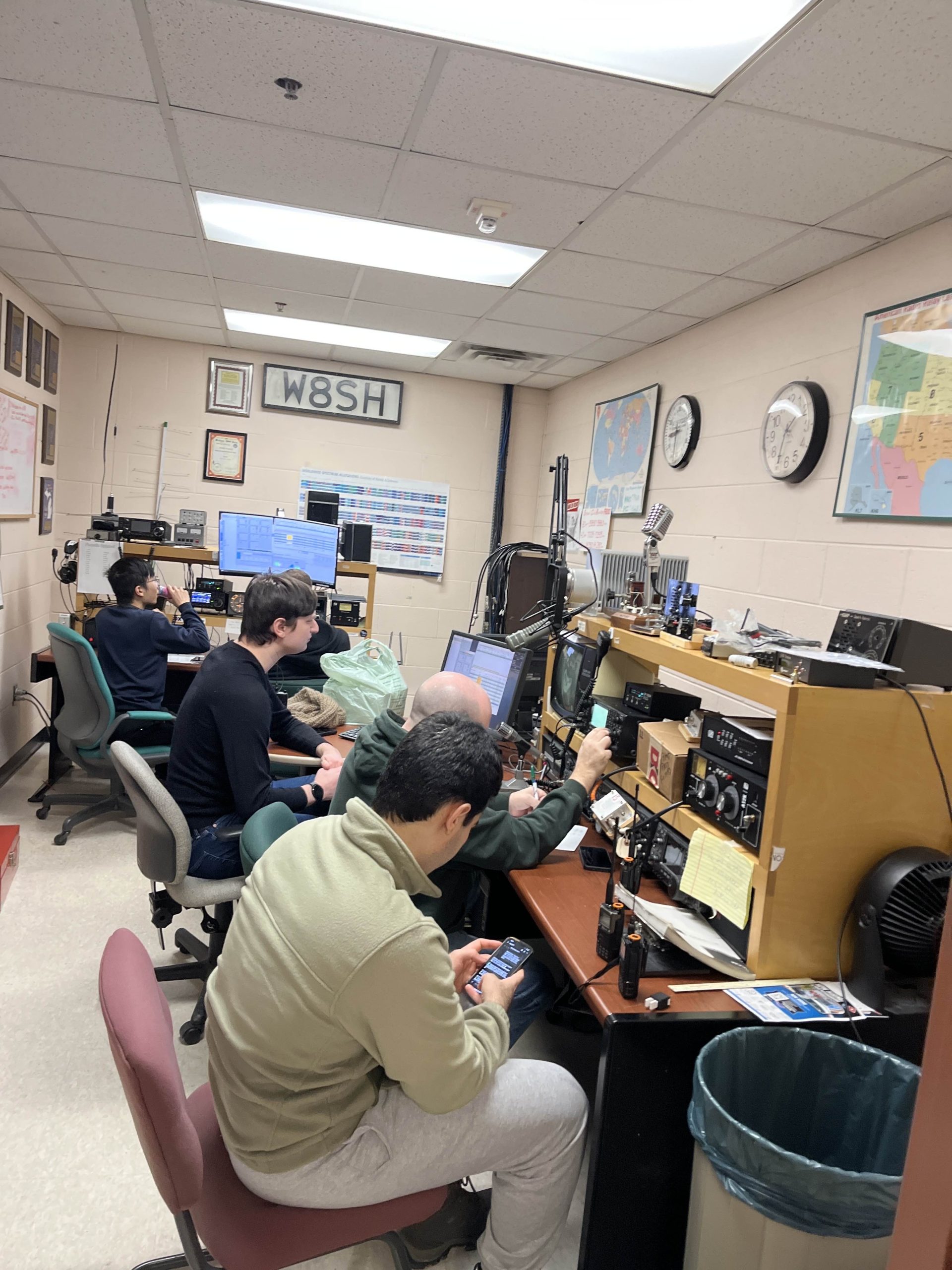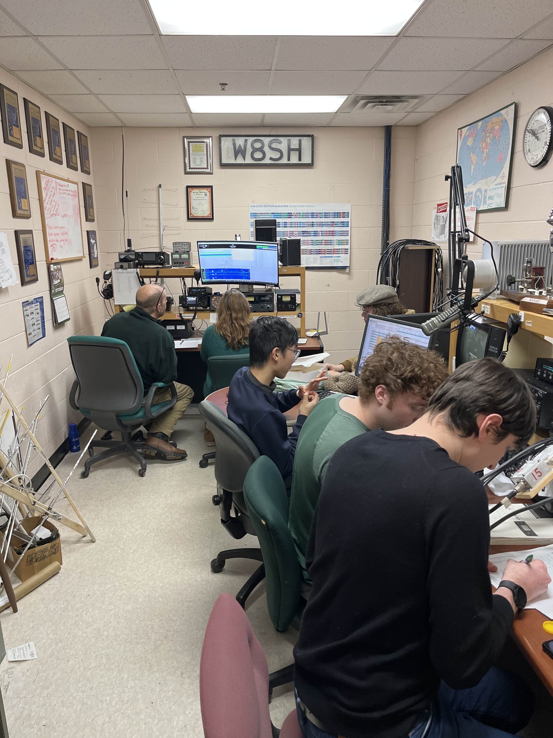 The room was absolutely packed for the duration of the event with CMARC members Tim W8NGT, Dan WX8MOJ, and Chris NS8Q operating from the various stations, as well as Charlie KE8ZRH, Michael KF8DQS, Dong AD8QG, Rohan KF8FBH and Jacob KF8FCH on behalf of MSU. There were even two totally new students which got to experience a whole radio-sport event including operation and logging.